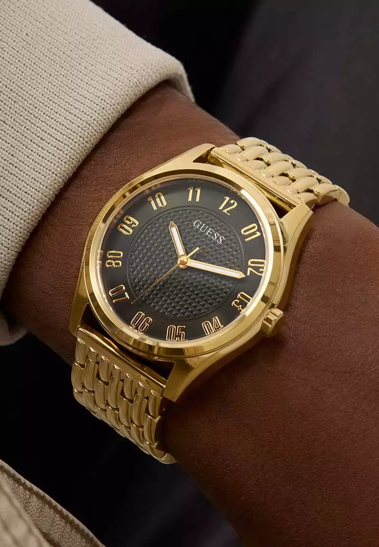 A quartz analog movement is powered by a battery. Quartz movements are highly accurate, capable of keeping time to within milliseconds per day.