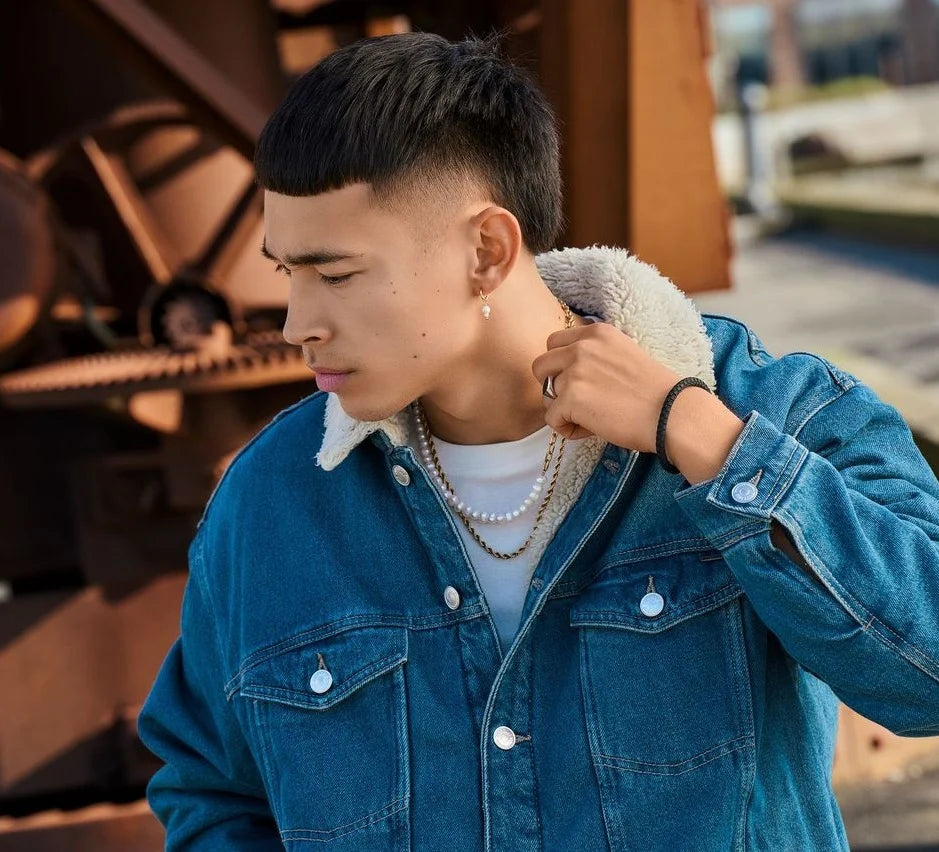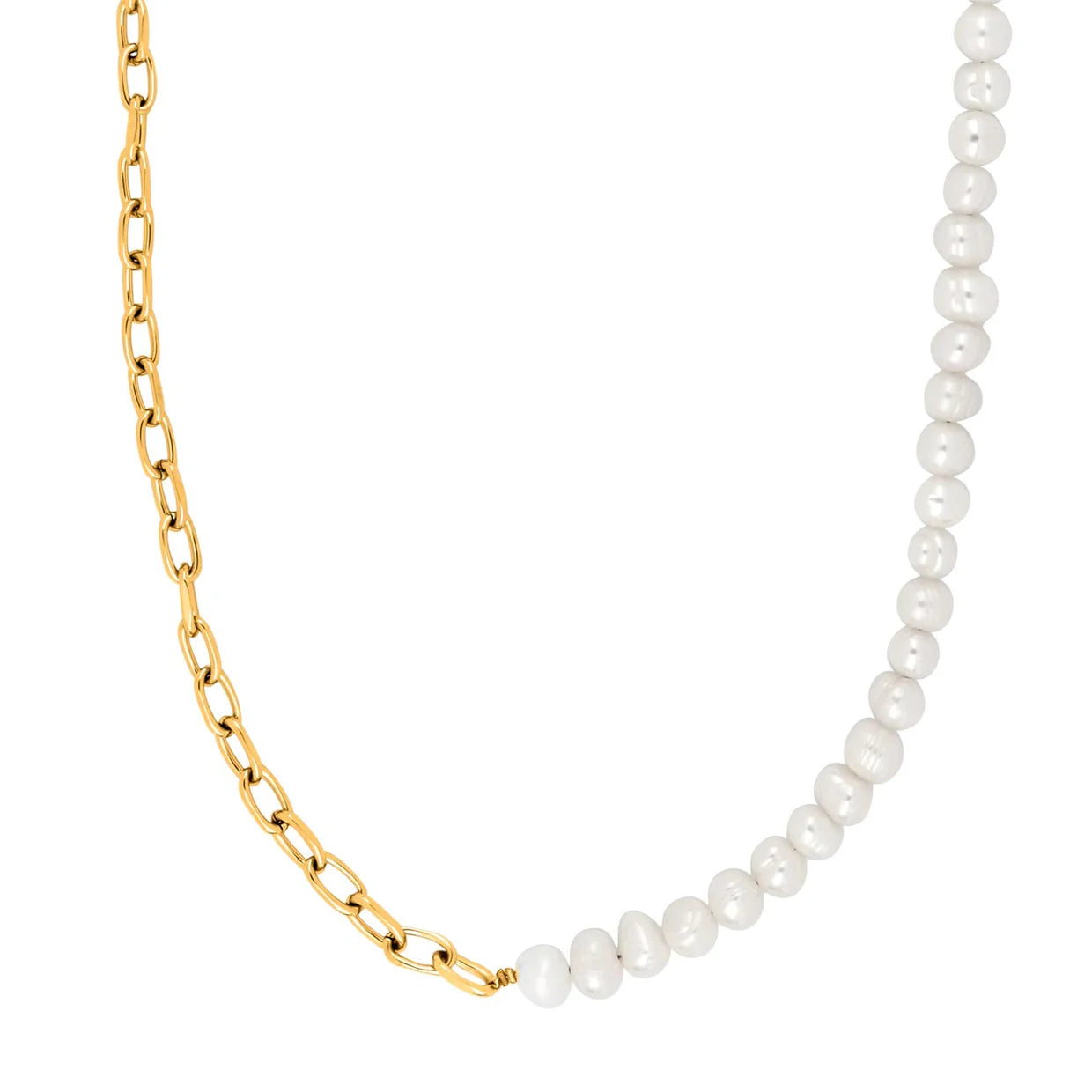 Gylt stál hálsketa við ferskvatnsperlum.