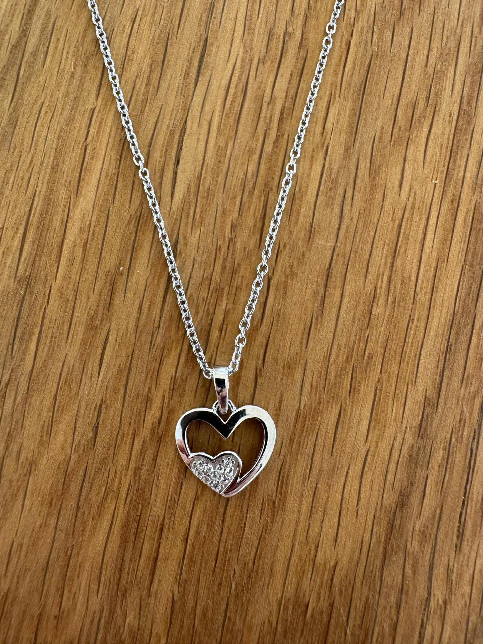 Silvur hálsketa við hjarta viðhang, við zirkonum.