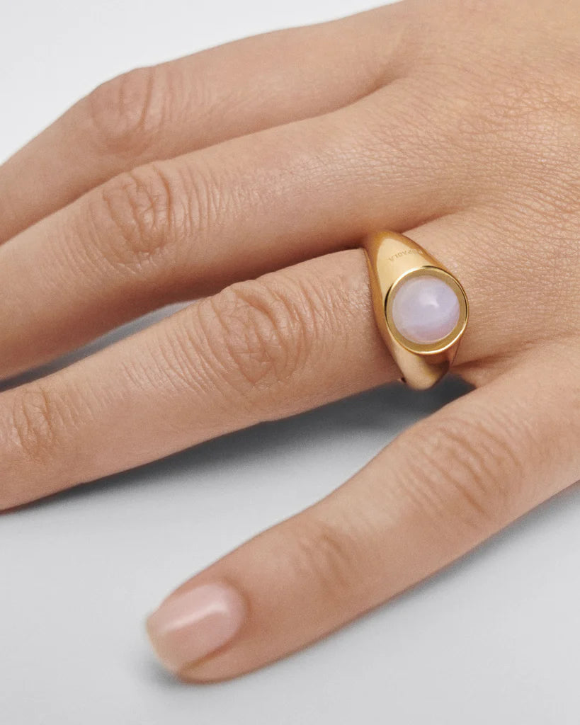 Ringur gylt silvur 925s við mánasteini