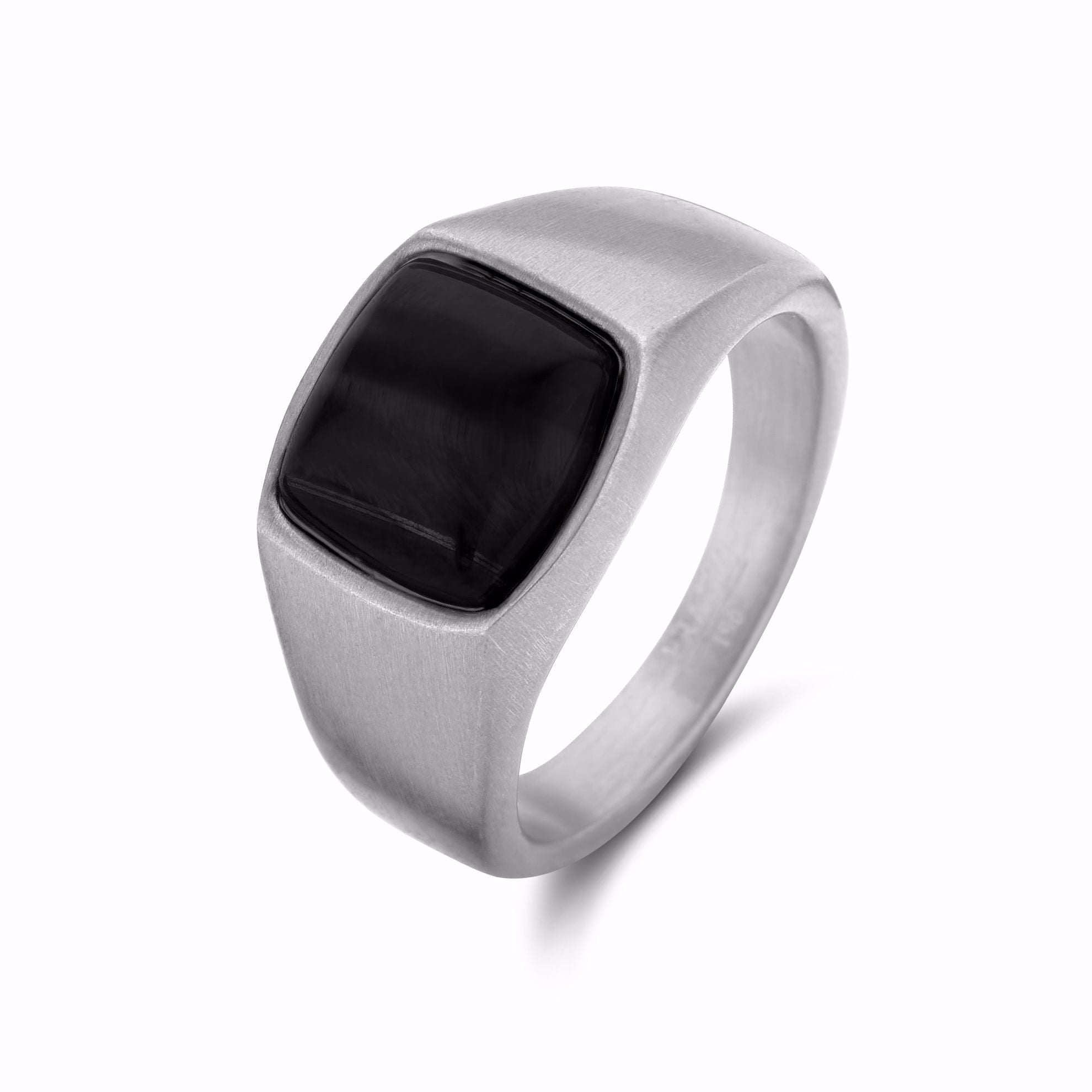 Ringur í stál við svørtum agat.