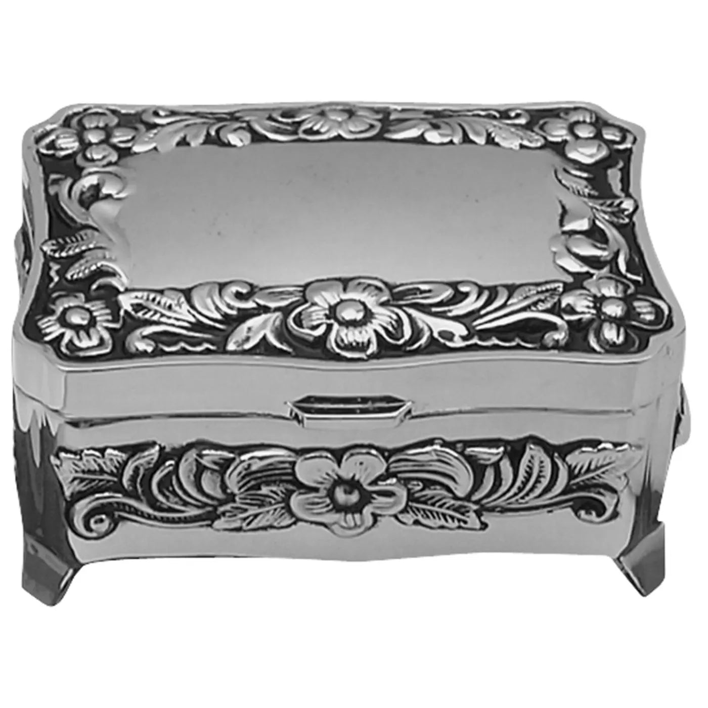 Antik smúkkuskrín við blómum.