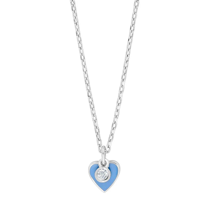 Silvur hjarta við bláari emalju